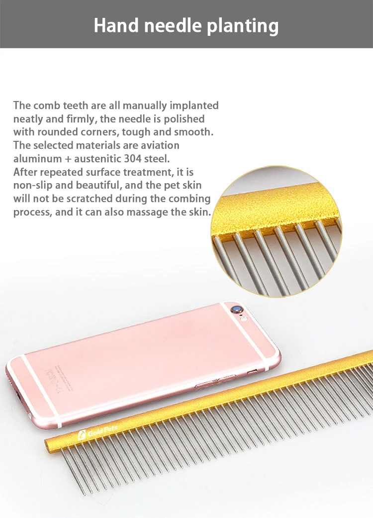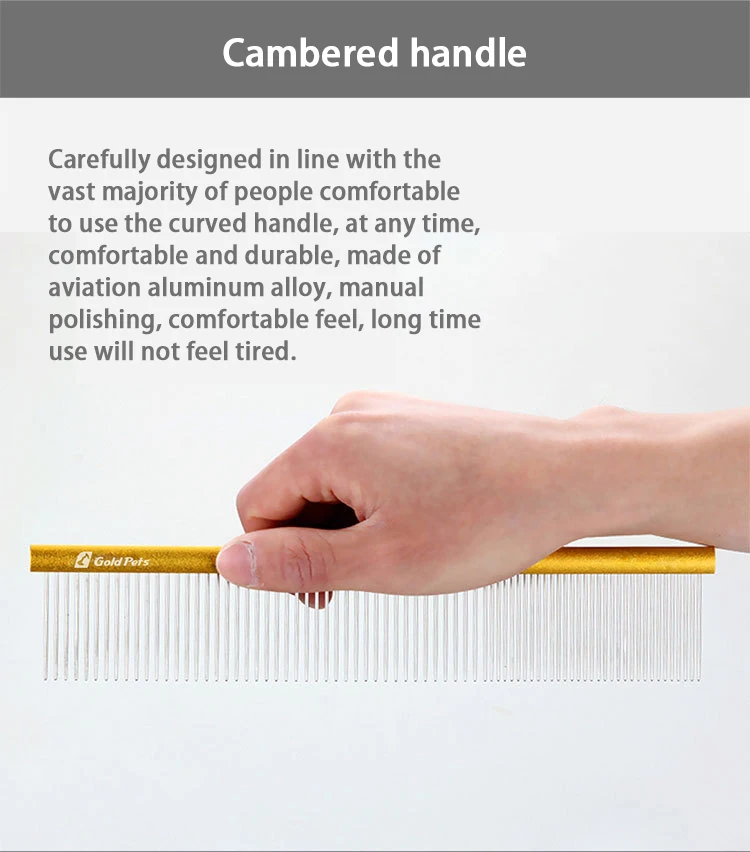 „ÄêCambered Handle For More Comfort and Easier Hold On.„Äë>>Our grooming comb for dogs and cats two ends of the handle are polished without sharp edges.This dog grooming comb It's safer and more comfortable to use for groomer.Handle surface through matte process flow, anti - slip.