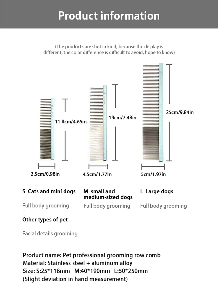 „ÄêSuitable For Long-Haired Dogs and Cats.„Äë>> Our dog comb for long haired dogs and cats will works well.DOG: Border herder, Samoyed, Sioux, Golden Retriever, Ancient herder, Chow Chow, Alaska, Shetty, Great pyrenees, Papillon, Megalodon, Afghan hound, Maltese. CAT:Muppet, Persian, Norwegian Wood, Maine Coon, Berman, Turkish Van, Paris Cat.it's useful steel metal comb for dogs and cats.